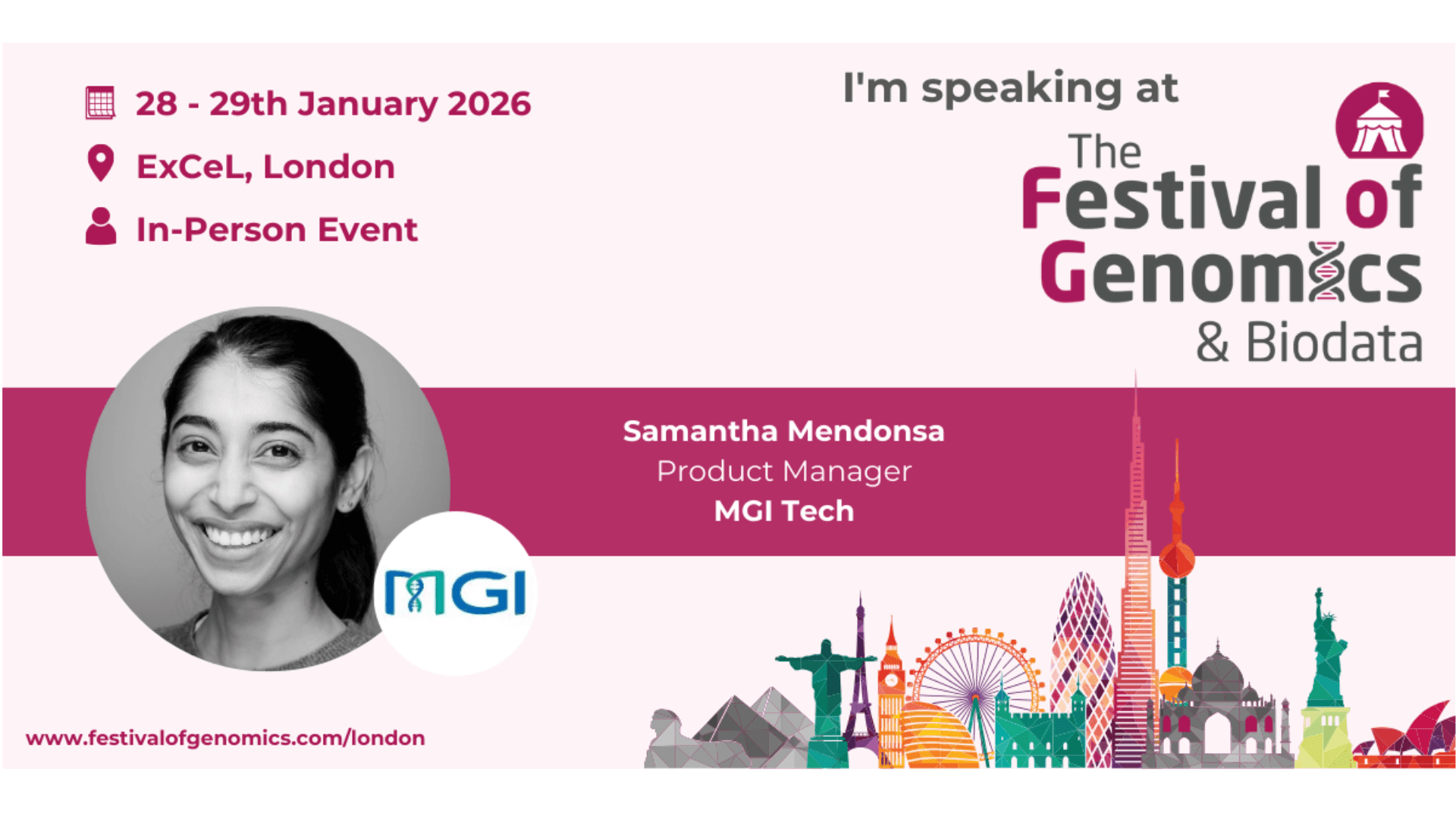 🧬 MGI Tech is exhibiting at The Festival of Genomics & Biodata, our booth is 87 and we will have a presentation where our very own Samantha Mendonsa presents "Why choose a DNBSEQ™ platform for your NGS workflow."